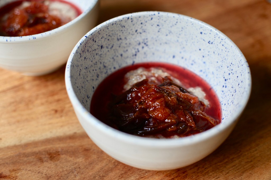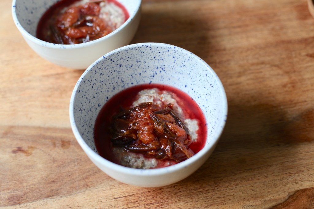 Den Heißen Zwetschgenkompott auf dem Porridge anrichten und ein gemütliches Frühstück genießen.