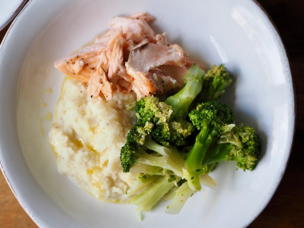 Den Lachs waschen, trocken tupfen und auf ein mit Backpapier ausgelegtes Backblech legen (alternativ geht natürlich auch eine Auflaufform). Den Saft einer halben Zitrone, die Rosmarin Stängel sowie Salz und Pfeffer drüber geben – dann ab in den vorgeheizten Ofen mit dem Fisch. Nach 20 bis 25 Minuten sollte er gar sein.