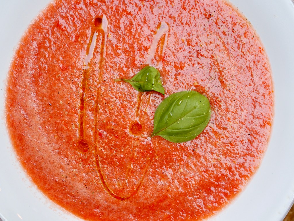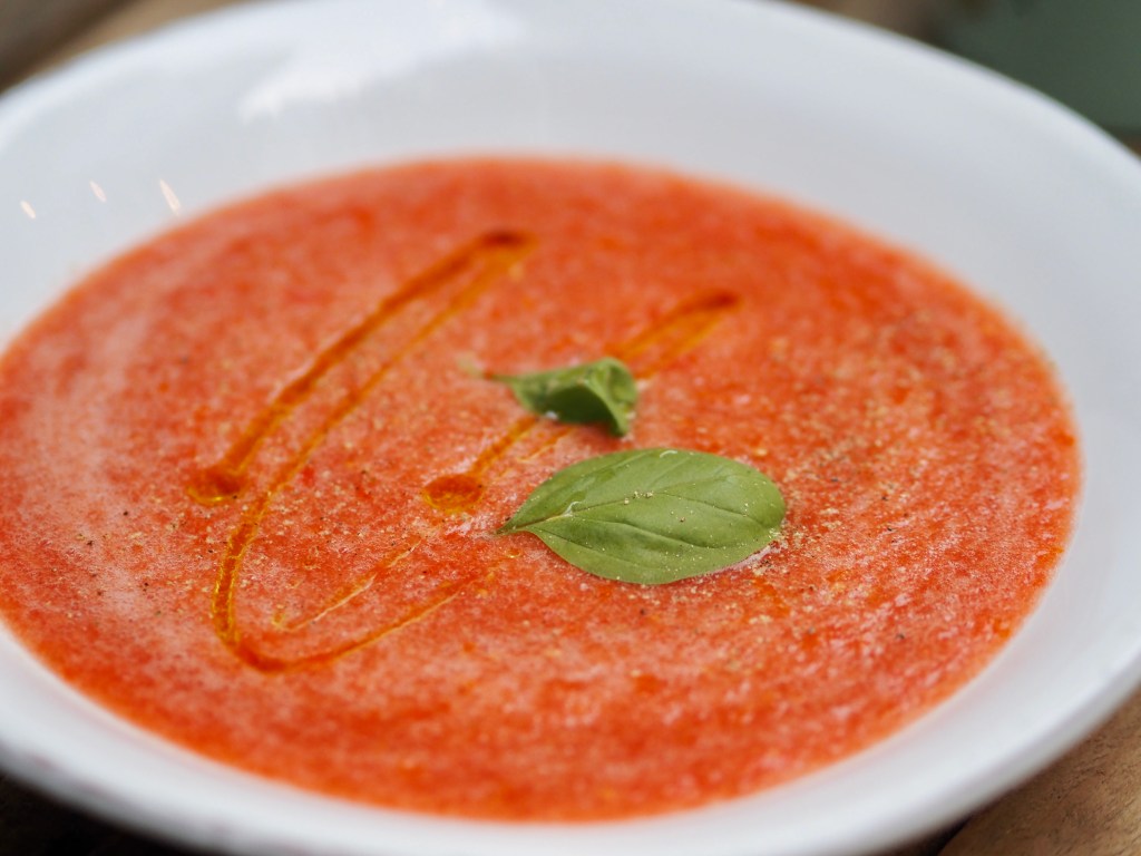 Zum Servieren auf tiefe Teller anrichten und mit einem Schuss gutem Olivenöl, frischem Pfeffer und Basilikum garnieren. Wenn ihr mögt, könnt ihr geröstetes Sauerteigbrot dazu reichen oder die Suppe um einen Büffel Mozzarella ergänzen.